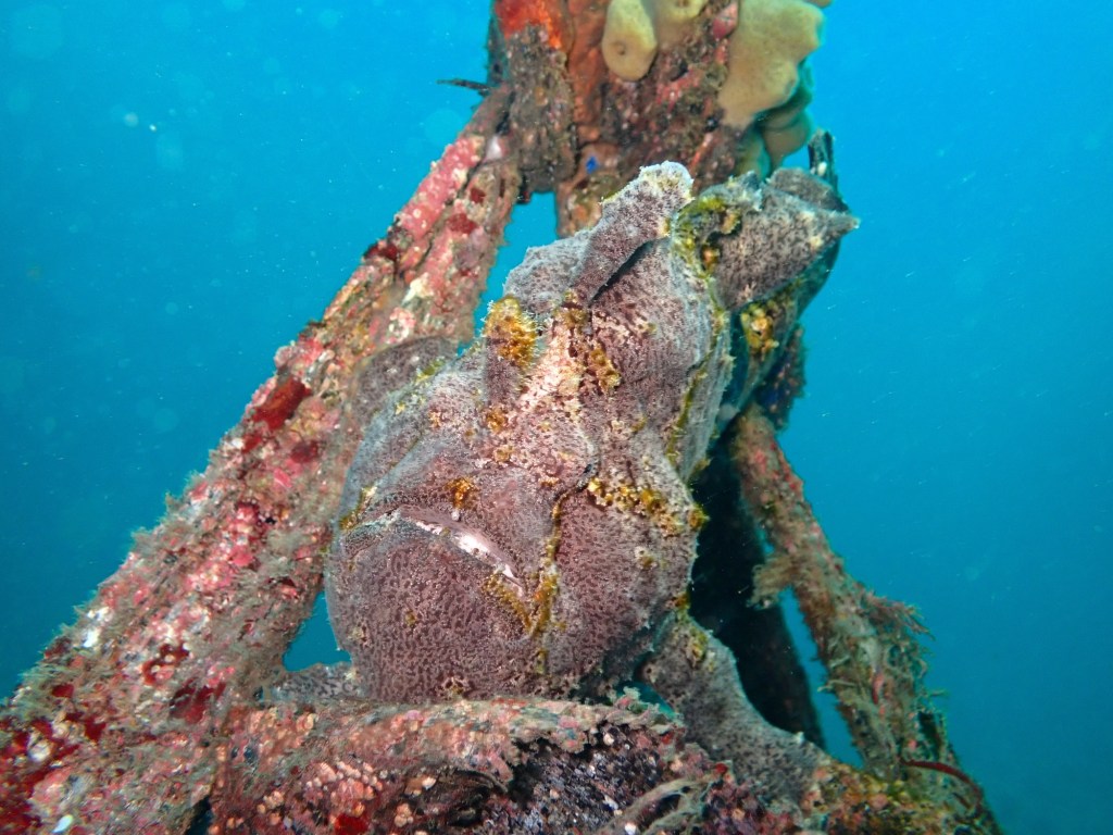 ブイ下には、顔ぐらいあるサイズのオオモンカエルアンコウ。
