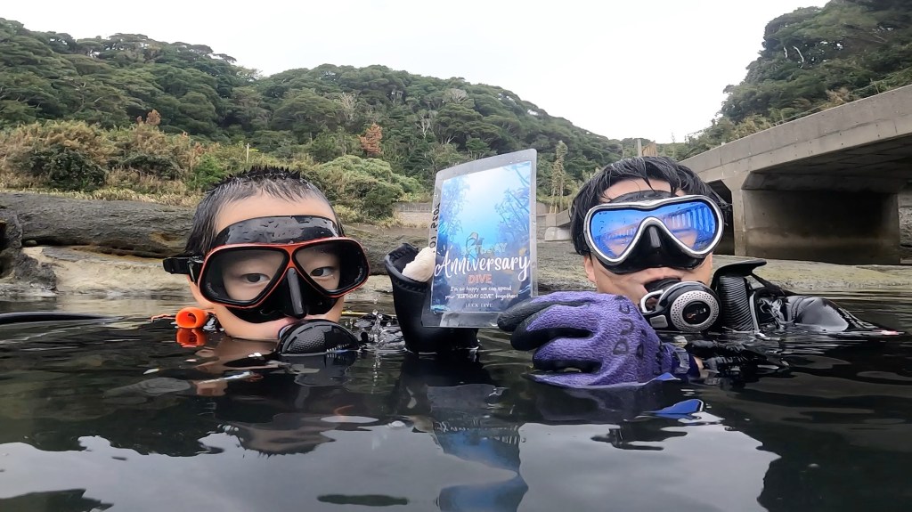 息子さんは、ちょうど10歳のお誕生日でダイビングデビュー。8歳の時にダイビングをしたいとなり念願のダイビングで喜んでました。