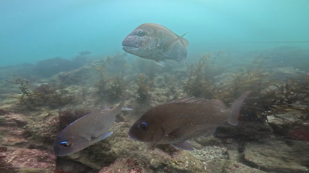 途中では、マダイが群れてかたまってくれたり。アオリイカの大群が入ってたり。