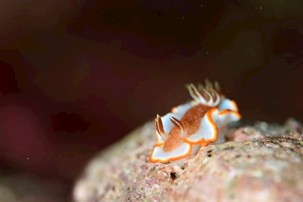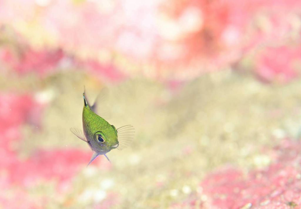 キャラメルウミウシやセダカスズメダイ幼魚。