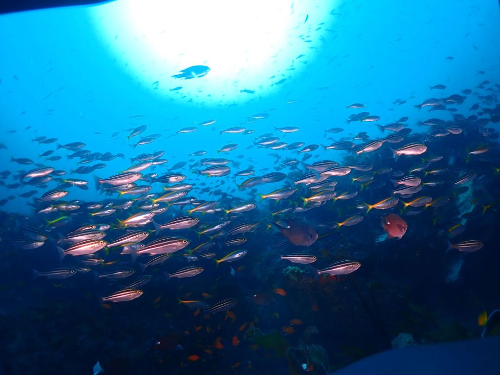 シラコダイも中々の数で南国チックな海。