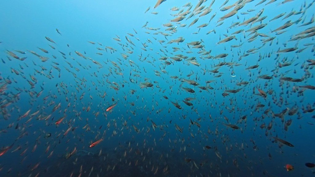 ネンブツダイが川のように群れていて。