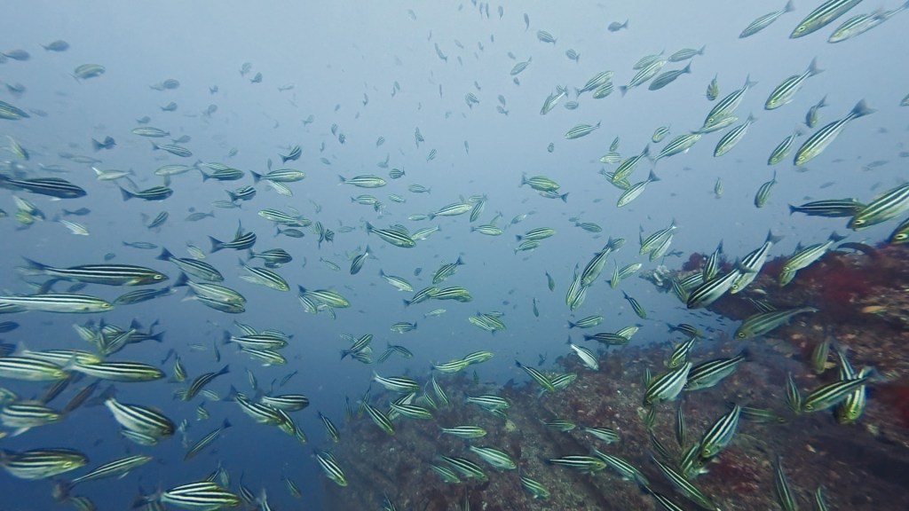 カゴカキダイやネンブツダイの群れも。