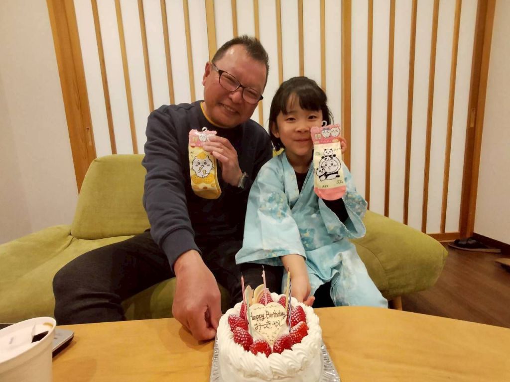 夜は、やじとみつきの間の日(7日)でお誕生日お祝い。