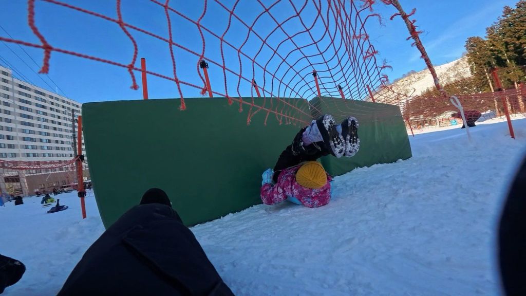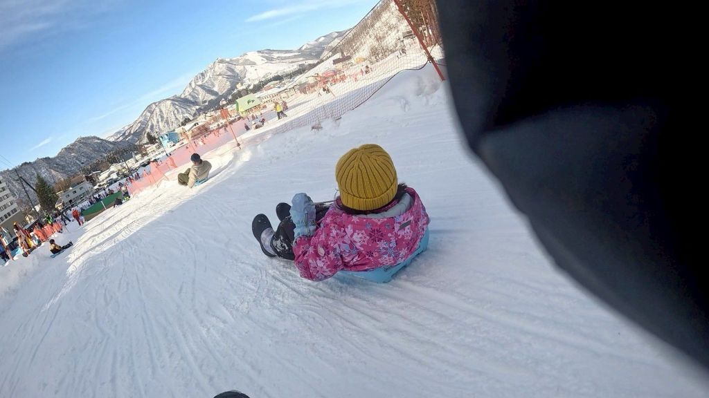 今回は、滑りよりも雪をかき集めて雪だるまやソリしてなど軽く雪遊び出来れば良いかなと思いきや。