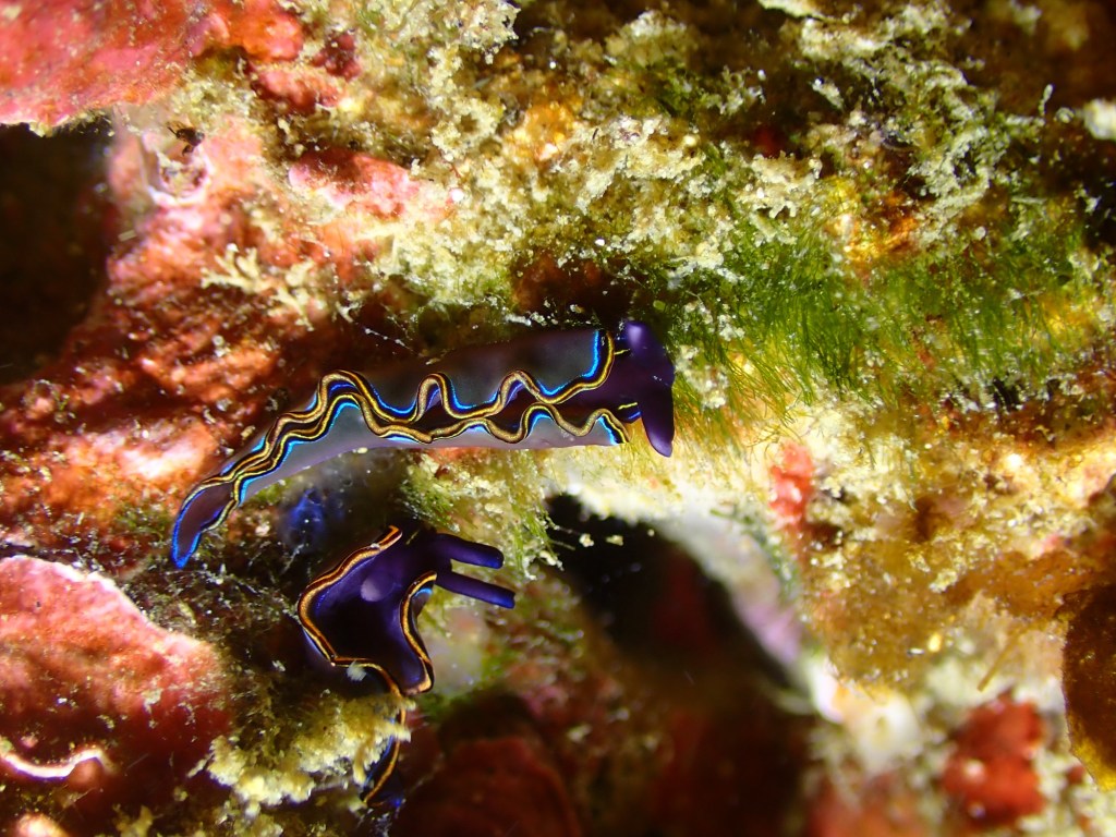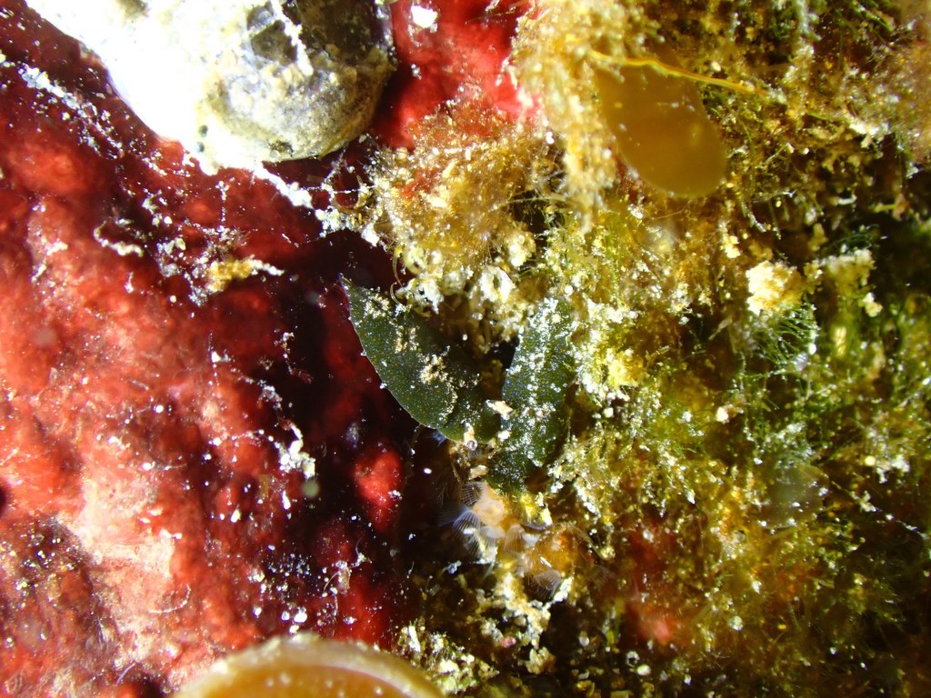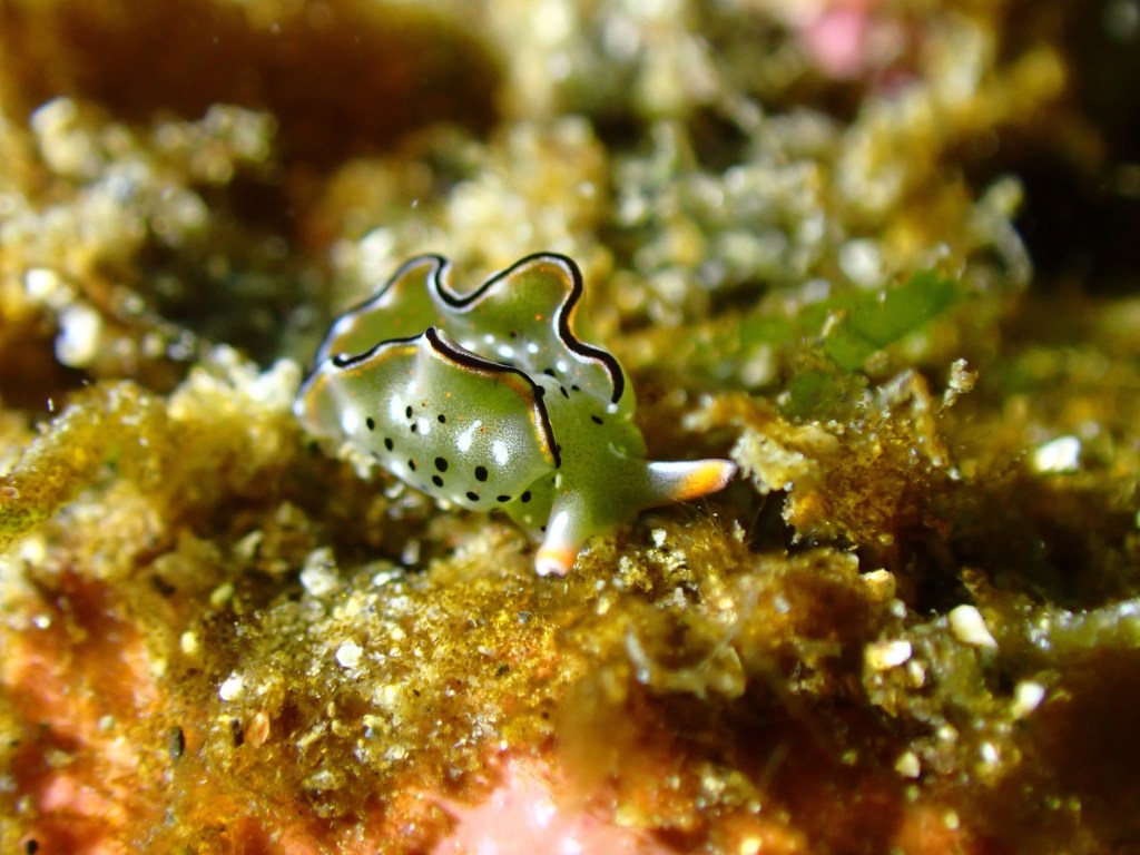 地形沿いでは、久々に登場のヒョウモンダコ。ちびちびのコノハミドリガイ。