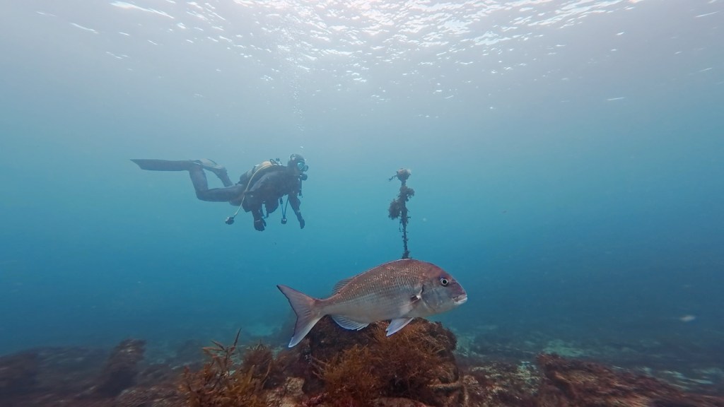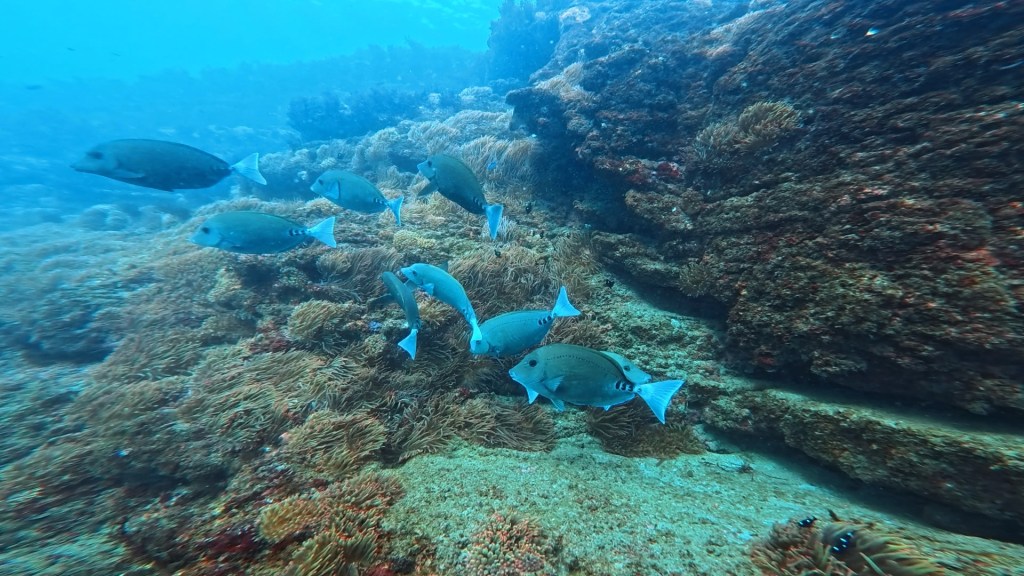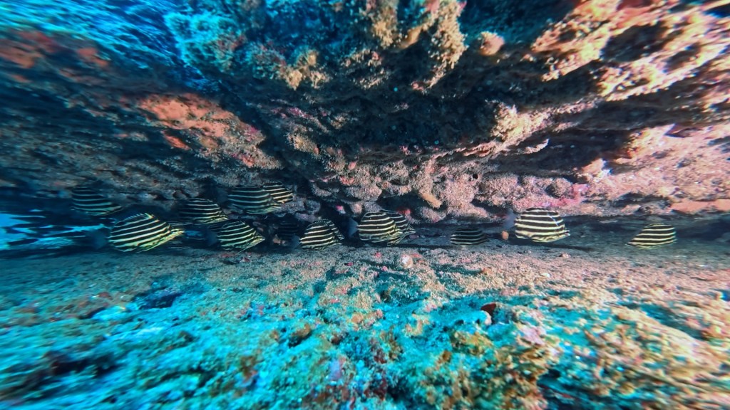 いつも棚からでて群れてるカゴカキダイが棚沿いで隠れていました。