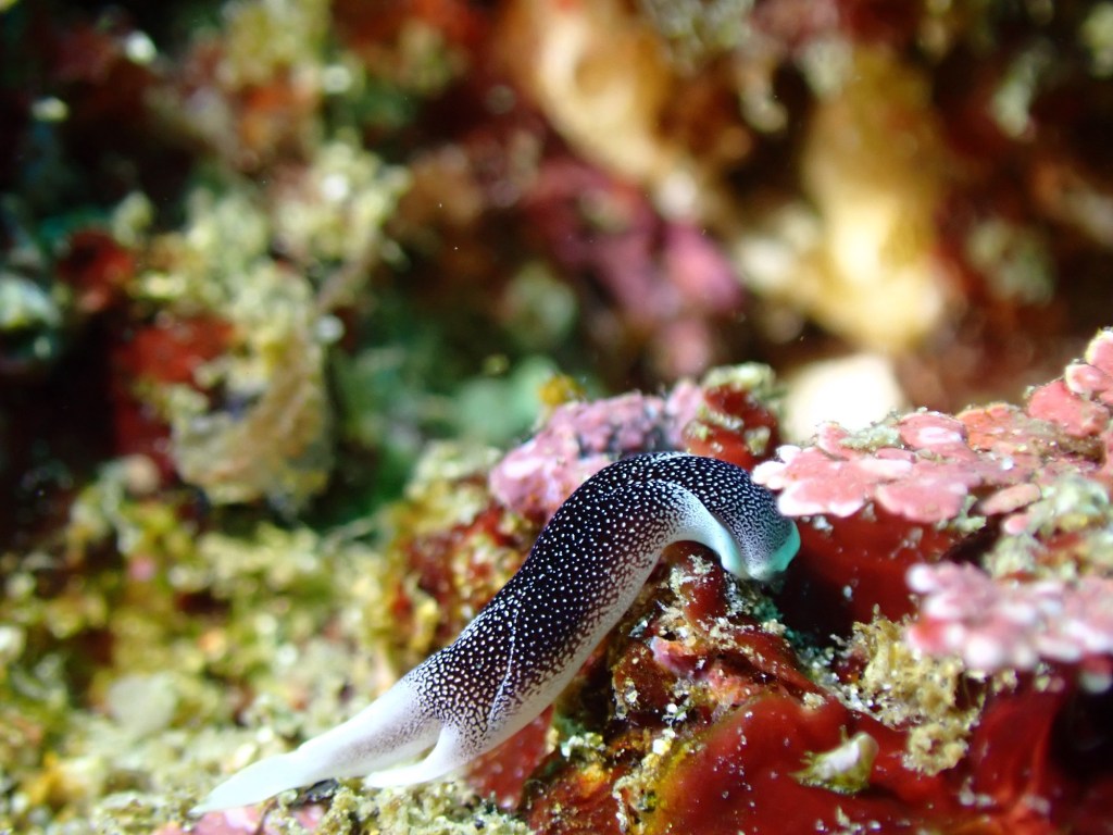 ダイバーに人気なゴマフビロードウミウシ。白、オレンジと個体別観察できました。