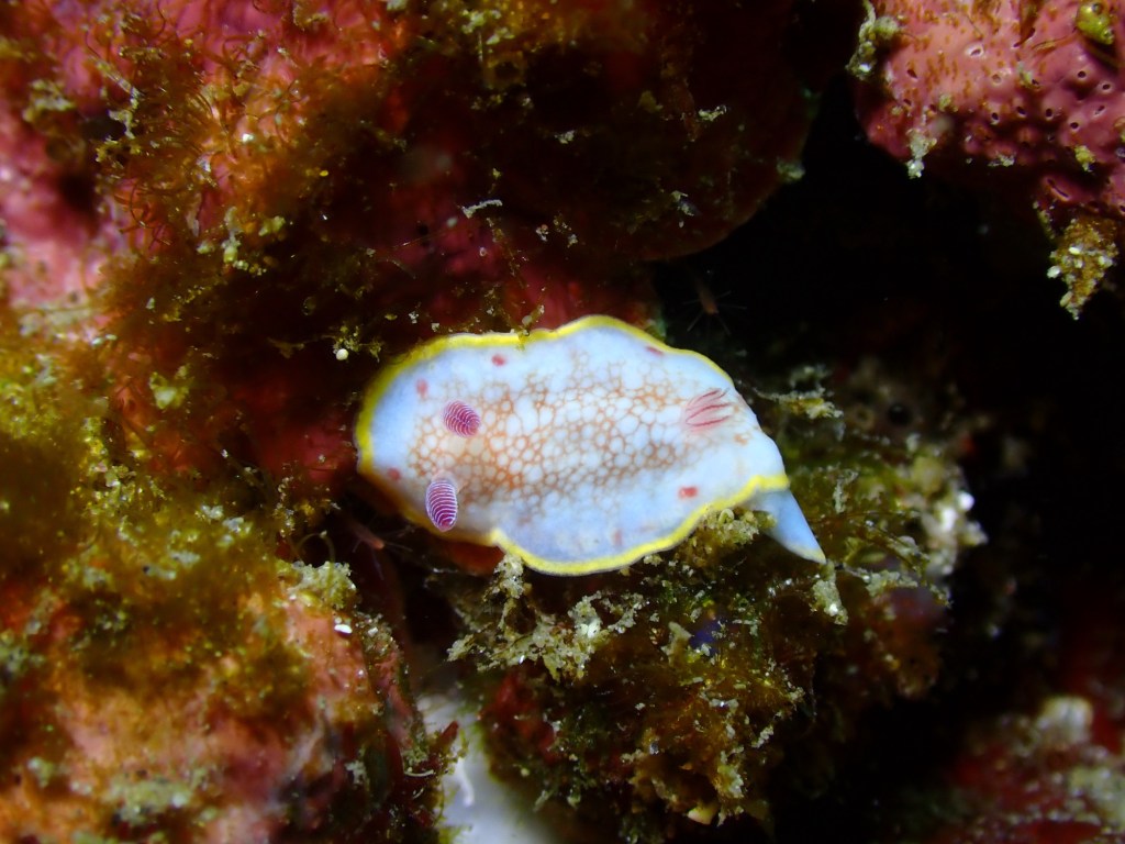 目玉焼きの模様で人気なウミウシの仲間。前回からいてペアでいる個体もいたりで増えていくといいですね。