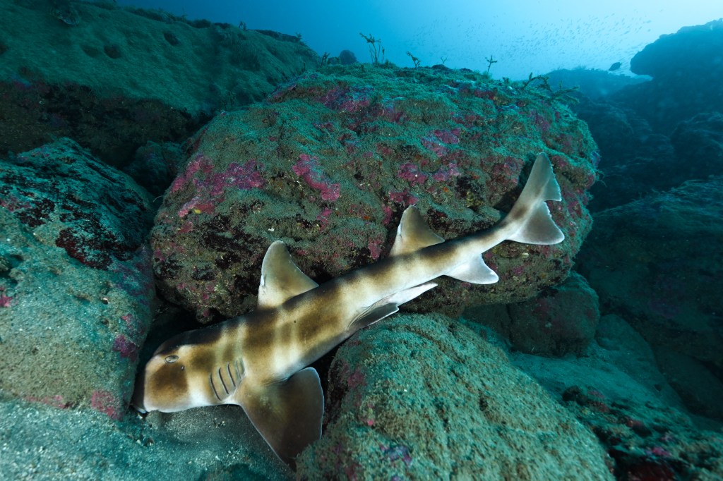 勝浦エリアでは、ポイントで棚沿いによく見かけるネコザメ。