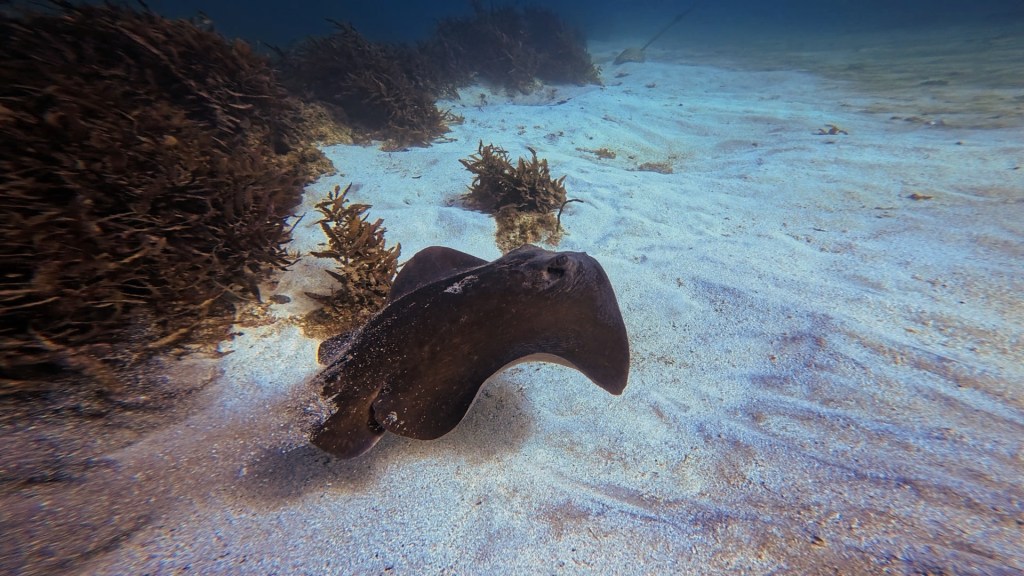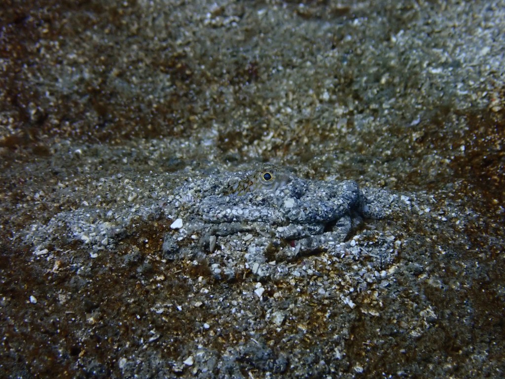 砂に隠れてあまり見れなかったけどエソの仲間。尾鰭がないホシエイは砂地で泳いでたり。