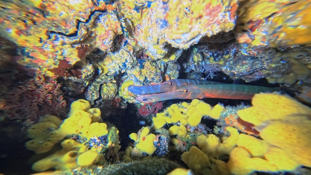 黄色カイメン近くで隠れてたヘラヤガラ。ペアになってました。