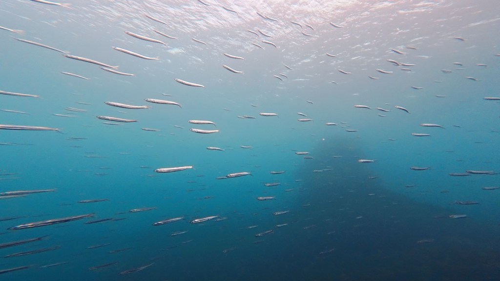 そしたらイワシの群れに遭遇。